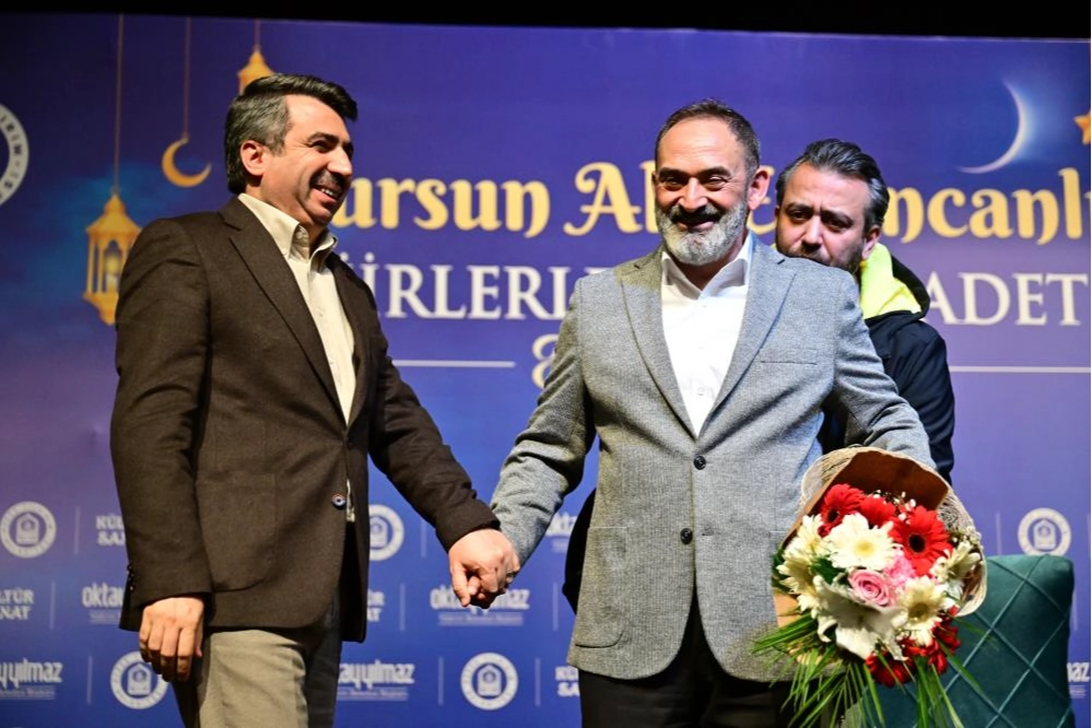 Yıldırım Belediyesi, Ramazan etkinlikleri kapsamında Şair Dursun Ali Erzincanlı'yı Bursalılarla buluşturdu. Barış Manço Kültür Merkezi'nde düzenlenen 'Şiirlerle Asr-ı Saadet' şiir dinletisine, ev sahibi Yıldırım Belediye Başkanı Oktay Yılmaz'ın yanı sıra AK Parti Yıldırım İlçe Başkanı İrfan Akkaya ve vatandaşlar katıldı. Bursalıların yoğun ilgi gösterdiği programda, Peygamber Efendimize (s.a.v.) atfedilen naat-ı şerifleri seslendirmesiyle tanınan Dursun Ali Erzincanlı çok sevilen şiirlerini seslendirdi. Şiirleri ve sohbeti ile katılımcılara duygu dolu anlar yaşatan Erzincanlı, Ramazan ayının ruhunu, iklimini yaşatan etkinlikler düzenleyen Yıldırım Belediyesi ve Başkan Oktay Yılmaz'a teşekkür etti. "Birliğimiz daim olsun" Yıldırım'ın maneviyat, tarih ve kültürle yoğrulmuş kadim bir şehir olduğunu belirten Başkan Oktay Yılmaz, "Ramazan ayı; paylaşmanın, gönüllerin buluşmasının ve manevi atmosferi birlikte yaşamanın en güzel vesilelerinden biridir. Bu mübarek ayın ruhunu hemşehrilerimizle birlikte yaşayabilmek için kültür ve sanatla yoğrulmuş programlar düzenlemeye devam ediyoruz. Kıymetli şairimiz Dursun Ali Erzincanlı'yı Bursalı hemşehrilerimizle buluşturmanın mutluluğunu yaşıyoruz. Peygamber Efendimize duyulan sevginin şiirlerle ifade edildiği bu güzel programda vatandaşlarımızla aynı duyguları paylaşmak bizler için çok kıymetli. Ramazan ayı boyunca birlik ve beraberliğimizi güçlendiren, gönüllerimizi buluşturan etkinliklerimizi sürdürmeye devam edeceğiz. Allah birliğimizi ve beraberliğimizi daim etsin" ifadelerini kullandı.