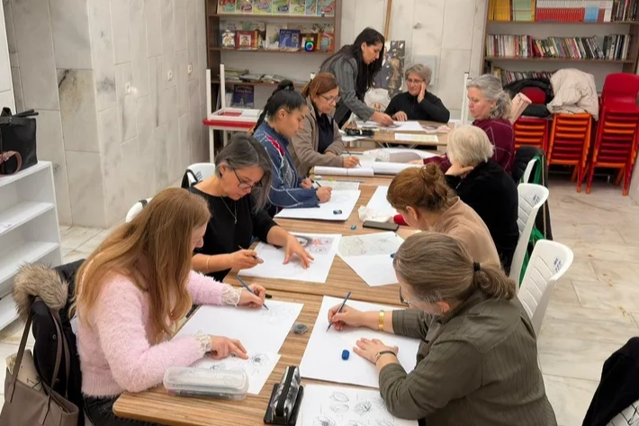Kadınlara özel olarak devam eden atölye kapsamında katılımcılara çizim ve boyama alanında temel teknikler aktarılırken, farklı malzemelerle yapılan uygulamalar sayesinde sanatsal ifade becerileri güçlendiriliyor.