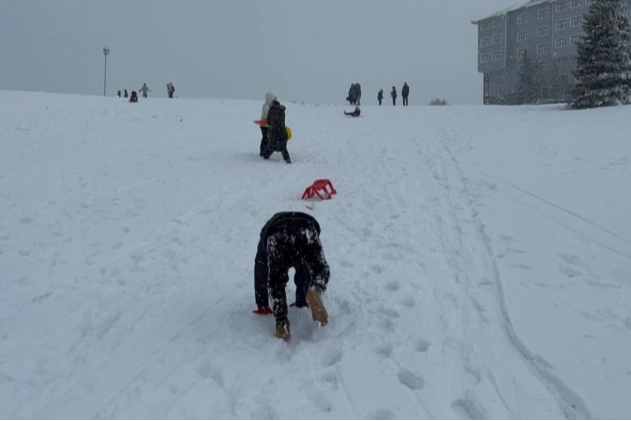 Özellikle aileler ve çocuklar karın keyfini çıkarırken, ortaya renkli görüntüler çıktı. Mart ayının sonuna gelinmesine rağmen etkili olan kar yağışı ise ziyaretçileri şaşırttı.