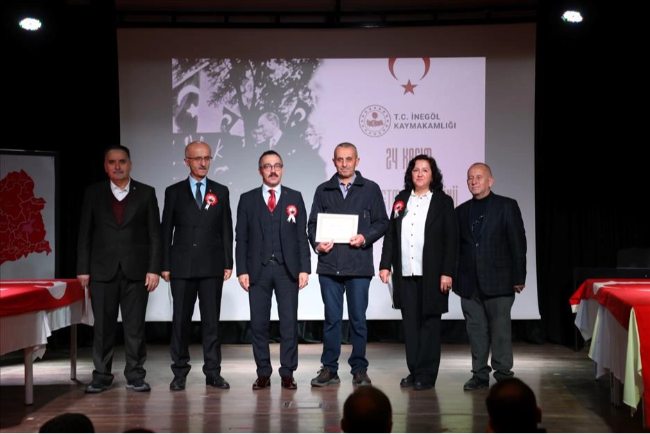 Atatürk anıtındaki tören sonrası, öğretmenler günü kutlama programı 10.30’da Beşinci Mevsim Kültür Sanat Merkezinde Şehit Fevzi Başaran Anadolu İmam Hatip Lisesi tarafından hazırlanan programla devam etti. Salon öğretmen, öğrenci ve vatandaşlar tarafından tamamen dolarken, 24 Kasım ve öğretmenlere gösterilen ilgi eğitim camiasını mutlu etti. Saygı duruşu ve İstiklal Marşının okunmasıyla başlayan öğretmenler günü programında Okul Müdürü Mahmut Alpir ile Milli Eğitim Müdürü Halil İbrahim Zengin, günün anlam ve önemine dair konuşmalar yaptı. Daha sonra emekli öğretmenler adına İnegöl’ün emektar eğitimcilerinden Hüseyin Avni Okumuş kürsüye gelerek bir konuşma yaptı.