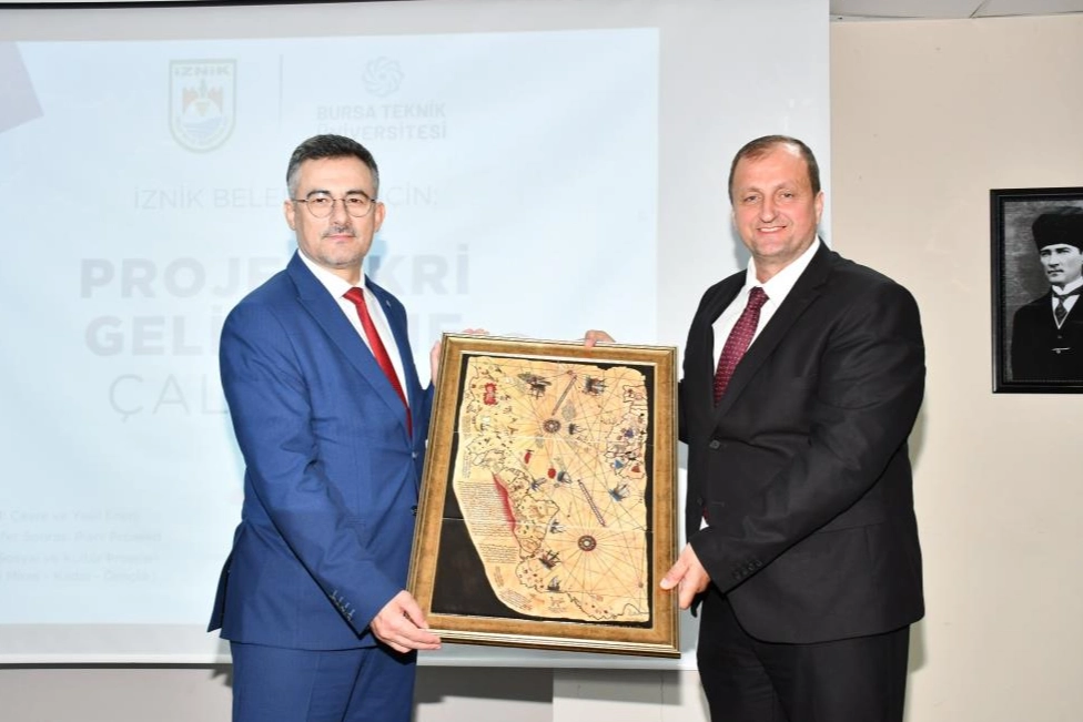 “Proje Fikri Geliştirme Çalıştayı’nın açılışına İznik Kaymakamı Arif Karaman, BTÜ Rektörü Prof. Dr. Naci Çağlar, İznik Belediye Başkanı Kağan Mehmet Usta, BTÜ Rektör Yardımcıları Prof. Dr. Barış Tamer Tonguç, Prof. Dr. Sinan Uyanık ve Prof. Dr. Beyhan Bayhan, Genel Sekreter Selim Uzun, BTÜ akademisyenleri ve İznik Belediyesi yöneticileri ile personeli katıldı. Çalıştayın açılış konuşmasını yapan Belediye Başkanı Kağan Mehmet Usta, “Belediyemizin çevre, şehircilik, afet, kültür ve sosyal konularında sürdürdüğü çalışmaların üniversitemizin bilimsel desteği ile birleşmesi, ilçemizi daha yaşanabilir ve daha akıllı bir şehir haline getirecek adımları atmamızda büyük rol oynayacaktır” diye konuştu. Başkan Usta günün anısına Rektör Çağlar’a İznik Çinisi üzerine işlenmiş Piri Reis Haritası hediye etti.