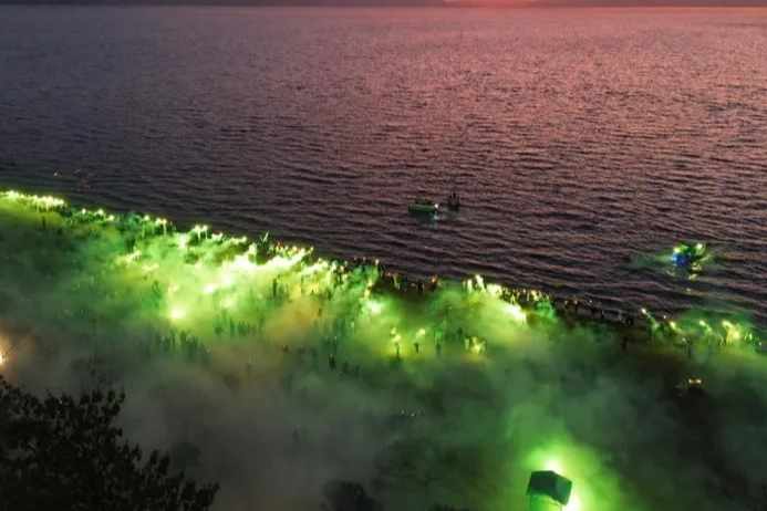 İznik sahilinde gerçekleştirilen kutlamalarda meşaleler yakılırken, marşlar ve tezahüratlar eşliğinde büyük coşku yaşandı. Sahil boyunca oluşan yeşil-beyaz atmosfer renkli görüntülere sahne oldu.