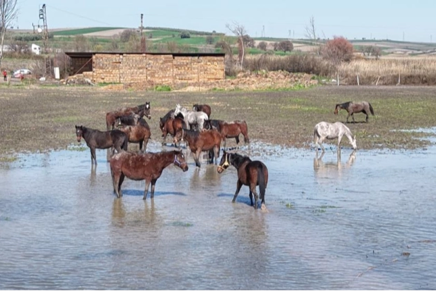 At çiftliğinin çalışanı Paşa Şıkıyev, 2017'den bu yana Karacabey'de tavlada çalıştığını belirterek, "Göl suları ilk kez buraya kadar geldi. Bu şekilde hiç görmemiştim. Atları sürekli ahırda tutamayız mecbur gezindikleri alana çıkardık. Orası da su altında ama yapacak bir şey yok bir süre böyle idare edeceğiz" dedi.