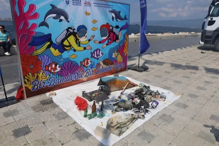 Bursa Büyükşehir Belediyesi’nin 26-29 Mayıs tarihleri arasında gerçekleştirdiği ‘Çevre Haftası Şenliği’, kentin dört bir yanındaki etkinliklerle devam ediyor. Etkinlikler kapsamında Park ve Bahçeler Dairesi Başkanlığı Sahil Planlama ve Yapım Şube Müdürlüğü tarafından Gemlik’te dalgıçlarla deniz dibi temizliği yapıldı. İskeledeki hazırlıkların ardından Espadon Dalış Merkezi’nin gönüllü dalgıçları, dalış gerçekleştirip deniz dibindeki kirliliği gözler önüne serdi. Dalgıçların, Gemlik Körfezi dibinden topladıkları plastik ve cam şişeler, metal ve ambalaj atıklar, oyuncaklar ve mutfak eşyaları, vatandaşların görmesi adına iskelede sergilendi.