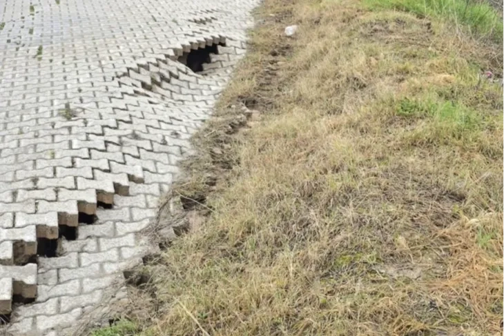 Bursa'nın Mudanya ilçesi Burgaz Mahallesi'nde bir sitenin önündeki yol, yağmurun ardından çöktü. Site sakinlerinin yoğun olarak kullandığı yolda meydana gelen çökme korkuttu.