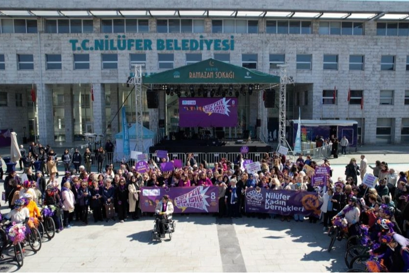 Nilüfer Belediyesi ve Nilüfer Kent Konseyi, 8 Mart Dünya Kadınlar Günü'nde geniş katılımlı bir yürüyüş ve basın açıklaması düzenledi. "Eşitlik Ses İster, Biz Buradayız" sloganıyla Nilüfer Kent Konseyi önünde başlayan yürüyüşte kadınlar, eşitlik ve direniş sloganları eşliğinde Nilüfer Belediyesi Halk Evi önündeki Cumhuriyet Meydanı'na kadar yürüdü. Etkinliğe, Nilüfer Belediye Başkan Yardımcıları Serpil Altun ve Bukle Erman ve meclis üyeleri ile Nilüfer Belediye Başkanı Şadi Özdemir'in eşi Nuray Özdemir de katıldı. Korteje, Nilüfer Kent Konseyi Bisiklet Çalışma Grubu da bisikletleriyle eşlik etti.