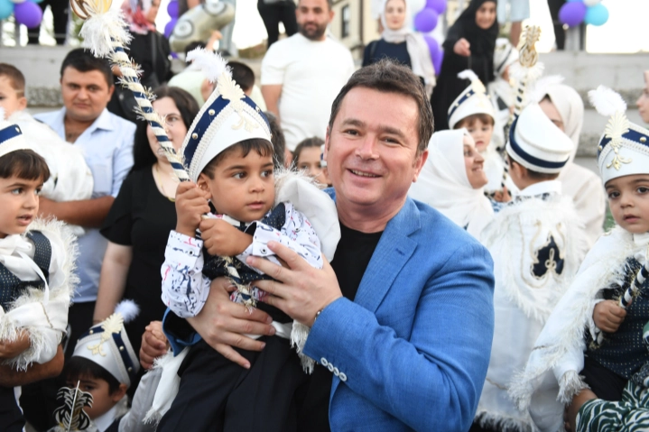 Yaptığı güzel hizmetlerle Osmangazi’de yaşayan vatandaşların yanında olmaya devam eden Osmangazi Belediyesi, 40 mahalleden 200 çocuk için düzenlediği sünnet şölenini ailelerin de katılımıyla Kamberler Parkında gerçekleştirdi. Sünnetlik kıyafetlerini giyerek şölen alanına gelen çocuklar Osmangazi Belediyesi, tarafından kurulan oyun alanlarında oynayarak keyifli vakit geçirdi. Mevlit okunmasıyla başlayan sünnet törenine Osmangazi Belediye Başkanı Erkan Aydın’ın yanı sıra Bursa Büyükşehir Belediyesi Başkan Vekili Mehmet Aydın Saldız, CHP Osmangazi İlçe Başkanı Raşit Gürbüz, CHP Parti Meclisi Üyesi Canan Taşer, Osmangazi Kent Konseyi Başkanı Fatma Çil Yılmaz, Osmangazi Belediyespor Başkanı Fatih Karayılan, belediye başkan yardımcıları, muhtarlar, sünnet çocukları ve aileleri katıldı. Adeta bir bayram havasında gerçekleşen sünnet şöleninde sünnet çocukları ve aileleri büyük mutluluk yaşadı.