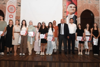 Sertifika alan öğrenciler Osmangazi Belediye Başkan Yardımcısı Tolga Kornoşor, tarafından çeşitli hediyelerle ödüllendirildi.