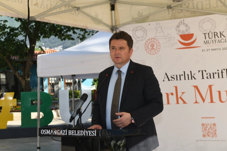 Birlik ve beraberlik sofrada başladığını ifade eden Osmangazi Belediye Başkanı Erkan Aydın, “Ortak sofralar, ortak değerler demek. Bizleri bir araya getiren yemeğin etrafında kurulan muhabbet, paylaşım ve kültür günümüzde hızlı yaşam tarzı ve ekonomik zorluklar geleneksel sofraları gölgede bıraksa da, bizler köklerimizden aldığımız güçle kültürümüze sahip çıkmaya devam ediyoruz. Bursa mutfağının kendine has tatları; kuzu etiyle hazırlanan nefis yemekler, kestane ve enginarın uyumuyla ortaya çıkan özel lezzetler, Bursa inciriyle taçlanan tatlılar yalnızca damaklarımızı değil, kalplerimizi de doyuruyor. Türk Mutfağı Haftası kapsamında, Kültür ve Turizm Bakanlığı ile Bursa Valiliği iş birliğinde Tophane Meydanı’nda düzenlediğimiz etkinlikte bu ortak mirası yaşatmanın mutluluğunu yaşadık. Sofralarda buluşmamıza vesile olan herkese teşekkür ediyorum” dedi.