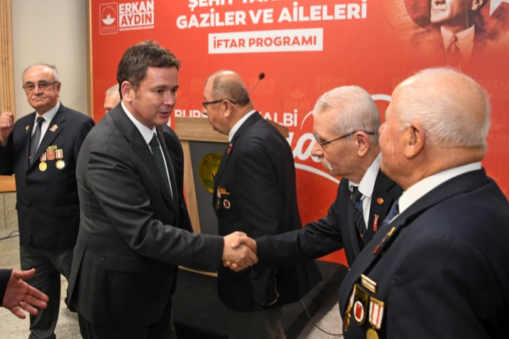 Osmangazi Belediye Başkanı Erkan Aydın, vatan uğruna canlarını feda eden aziz şehitlerin emanetleri ile kahraman gaziler onuruna düzenlenen iftar programına ev sahipliği yaparak, vefa ve minnet duygularının hissedildiği anlamlı bir buluşma gerçekleştirdi.