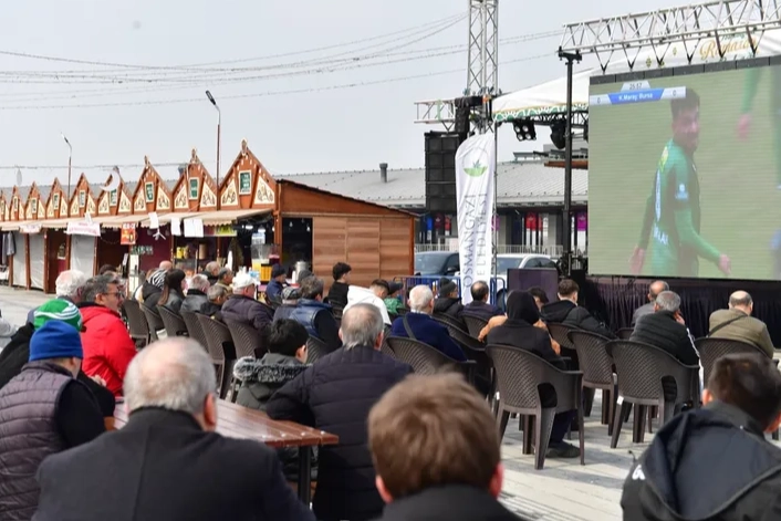 Ramazan ayı süresince düzenlenen çeşitli aktivitelerle Bursa’da adeta bir cazibe noktası haline gelen Osmangazi Meydanı, bu kez yeşil-beyaz sevdasını paylaşan taraftarları ağırladı. Kentin en önemli değerlerinden Bursaspor’a olan desteğini her alanda sürdüren Osmangazi Belediyesi, yeşil beyazlı takımın Nesine 2. Lig’in 28. Haftası’nda deplasmanda karşılaştığı Akedaş Kahramanmaraş İstiklal Spor mücadelesine özel olarak Osmangazi Meydanı’nda dev ekran kurdu. Maç saatine yaklaşırken meydanda toplanan Bursaspor taraftarları, takımlarına destek verdi. Kurulan dev ekranda karşılaşmayı takip eden Osmangazili vatandaşlar, 90 dakika boyunca büyük bir heyecan yaşadı. Aileleri ve arkadaşlarıyla birlikte meydana gelen vatandaşlar, Bursaspor sevgisini birlikte paylaştı.