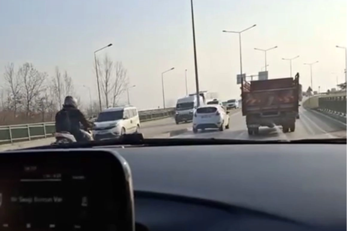 Bursa'da seyir halindeki otomobilde bulunan bir vatandaş, sosyal medya için görüntü çekmeye başladı. Telefonuyla kayda giren vatandaş, bir motosikletlinin kaza anını kayıt altına aldı. Kaza anı saniye saniye kaydedildi.