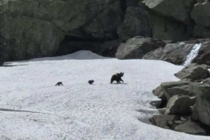 Mevsimlerin kayması sebebiyle havaların geç ısındığı hatta karın hala erimediği zirvede kış uykusunu tamamlayıp kaldıkları mağaradan çıkan anne ayı ve 2 yavrusu yiyecek ararken görüntülendi. Ayı ailesi bir süre sonra gözden kayboldu.