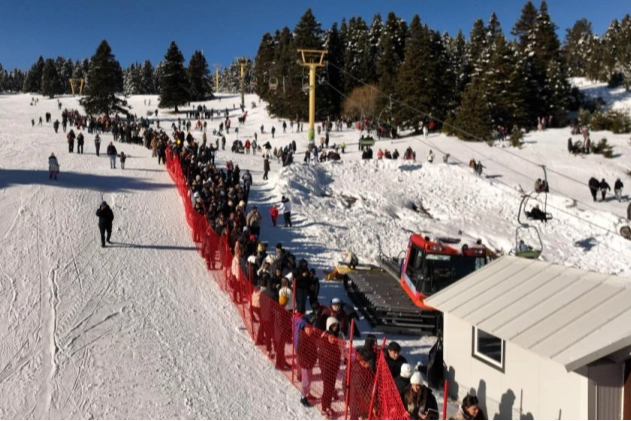 Kayak yapmak için telesiyej sırası bekleyen binlerce kişinin zirveye doğru uzanan kuyruk görüntüsü gökyüzünden bakılınca tabloları aratmadı. Kuyrukta sıra bekleyen kayakçıların güneşte uzayan gölgeleri izlemeye değer görüntüler ortaya çıkardı. Yılbaşından ağzı yanan işletmeciler sömestir tatili öncesi yaptıkları indirimlerle genelini öğrenci gruplarının oluşturduğu tatilcilerin rotasını Uludağ'a çevirmeyi başardı. Bölgedeki otellerde son iki günde yapılan rezervasyonlarla doluluk olanları neredeyse yüzde 100'e ulaştı. Uludağ bu kadar talep görünce de kar kalınlığı en fazla ölçülen birinci bölgedeki kayak pistlerinde kelimenin tek anlamıyla insan seli yaşandı. Kayakçısından, kızakçısına, poşetle kayanından, acemisine kadar bir çok vatandaş karın tadını çoluk çocuk hep birlikte pistlerde doyasıya çıkardı.