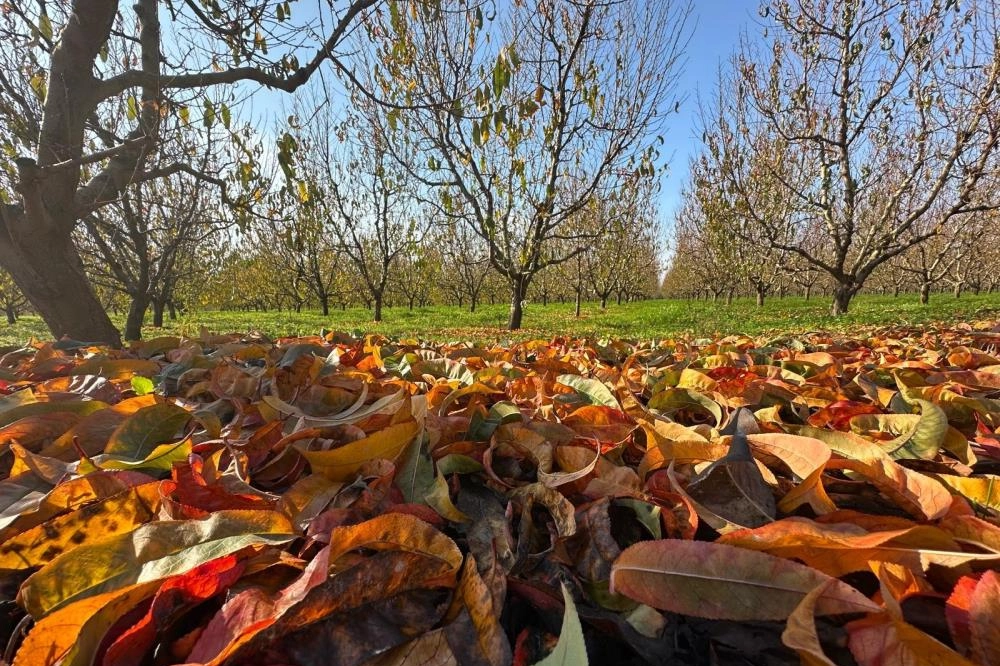 TÜİK'in "Bitkisel Üretim 2. Tahmini"ne göre, meyveler, içecek ve baharat bitkilerinde üretim miktarının 2025 yılında 2024'e göre 30,4 azalarak yaklaşık 19,8 milyon tona düşmesi bekleniyor. Bir önceki yıla göre elma üretiminin yüzde 48,3, şeftalinin yüzde 46,1, nektarinin yüzde 44,1, kiraz ve vişnenin 70,6, üzümün yüzde 24,5, kayısının yüzde 73, armudun yüzde 32 azalacağı tahmin ediliyor. Armut ve şeftalide önemli üretim merkezlerinden olan Bursa'nın Gürsu ilçesinde de zirai don ve kuraklık nedeniyle şeftali rekoltesinin 15 bin ton, santa maria cinsi armudun ise 45 bin tona düştüğü öngörülüyor. Tarım ve Orman Bakanlığına göre son 30 yılın en düşük sıcaklığının oluştuğu zirai don ve ardından gelen kuraklık nedeniyle çok zor bir sezonu geride bırakan meyve ağaçları, yorgunluğunu atmaya dinlenmeye çalışıyor. Yazarlar ve şairlerin hasat mevsimi olan sonbaharda, hasattan yorgun çıkan ve yapraklarını döken meyve ağaçları, ilkbaharda tekrar çiçek açana kadar yaşadıkları soğuk stresi ve oluşan yaraları iyileştirecek. Gürsu'da da bahçeler sonbahar renklerine büründü ve birçok ağaçta yaprak bile kalmadı. Armut ve şeftali ağaçlarından dökülen rengarenk yapraklarla bahçelerin zeminleri, bir ressamın doğayı resmettiği tuvali andırdı. Bahçeler drone ile havadan görüntülendi.