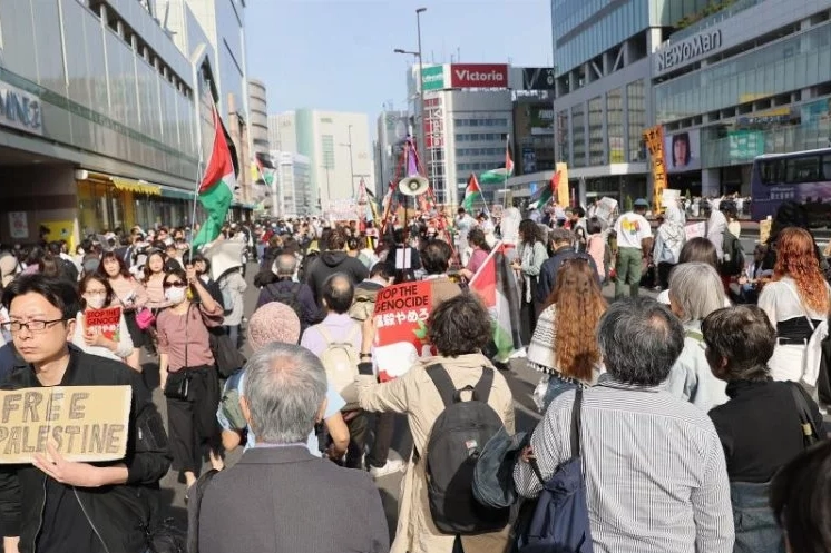 Japonya'nın başkenti Tokyo'da Filistin destekçisi yerli yabancı yüzlerce kişi Shinjuku Tren İstasyonu önünde bir araya geldi. İsrail'i protesto eden göstericiler, "Özgür Filistin", "Gazze'de soykırımı durdurun" ve "Acil ateşkes!" sloganları attı. Yan yana dizilerek tren istasyonu çevresinde çember oluşturan grup adına konuşan Filistinli Hamin Siyan, İsrail'in toprak gaspına tepki olarak ortaya çıkan Toprak Günü nedeniyle bir araya geldiklerini belirtti. Siyan, "Bugün Japonlar başta olmak üzere dünyanın her yerinden insanlarla İsrail'in devam eden toprak gaspına tepki göstermek üzere burada toplandık" dedi. Gazze'de soykırımın devam ettiğine dikkat çeken Siyan, "İsrail'in Gazze'deki soykırımını ve toprak gaspını durdurmak amacıyla bu gösteriyi gerçekleştiriyoruz" ifadelerini kullandı. Siyan, ülke hükümetlerine yaşanan insanlık dramına karşı harekete geçme çağrısında bulundu. "Filistin'in özgürlüğünü kazanmasını talep ediyoruz" Göstericilerden Tsukiji Ayokama ise eylemi düzenlemek için Tokyo'nun en kalabalık tren istasyonu olan Sjinjuku İstasyonu'nu seçtiklerini belirterek, "Japonya'da yaşayan herkesin Filistin'de durumun ne kadar içler acısı olduğunu anlamalarını sağlamayı istiyoruz" dedi. Bölgede olanları durdurmanın tüm dünyanın sorumluluğu olduğunu vurgulayan Ayokama, "İsrail'in insanları öldürmeyi durdurmasını istiyoruz. İşgalin durmasını ve Filistin'in özgürlüğünü kazanmasını talep ediyoruz" ifadelerini kullandı. 30 Mart Toprak Günü İsrail, 30 Mart 1976'da Filistin'in kuzeyindeki Celile bölgesinde yaşayan Filistinlilere ait binlerce dönüm araziye el koymuş, Filistin halkı ise durumu protesto etmek için geniş çaplı gösteriler düzenlemişti. İsrail polisi gösterilere katılan Filistinlilere ateş açarak 6 kişiyi öldürüp binlerce kişiyi yaralamıştı. 30 Mart, o günden bu yana Toprak Günü olarak Filistin direnişinin simgelerinden biri olarak biliniyor.