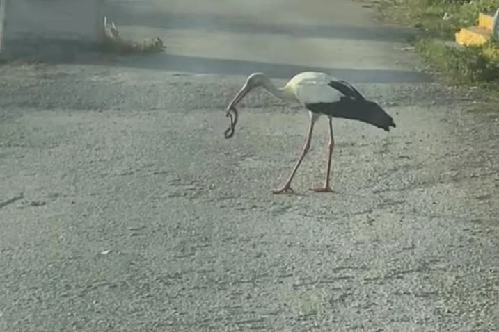 Bursa'da hava sıcaklığı sebebiyle ortaya çıkan yılanlar, vatandaşları tedirgin etti. Kimi itfaiye ekiplerini çağırıp yakalanmasını beklerken, kimi ise arabasından bile inmeden yoluna devam etti. Leylek köyü Karaağaç'ta bir leylek gördüğü yılanı tek hamle ile midesine indirdi. O anlar bir vatandaş tarafından saniye saniye kayda alındı.