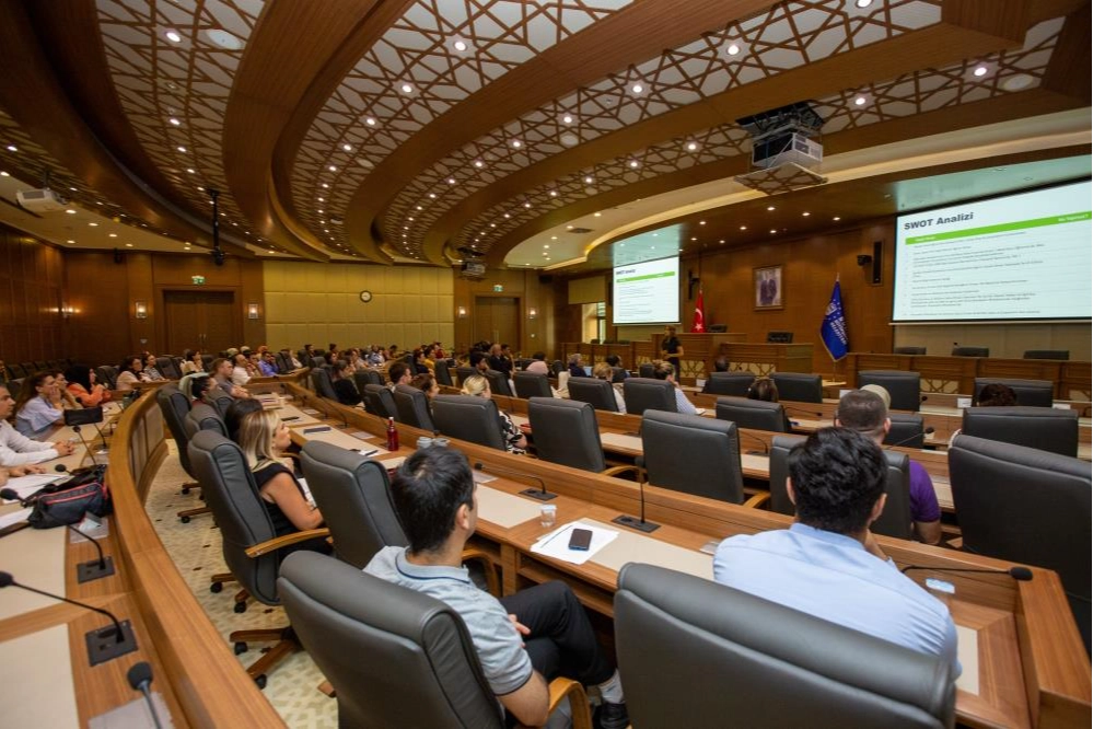 Bursa Büyükşehir Belediye Başkanı Mustafa Bozbey'in tüm ilçe belediye başkanlarını ziyaret edip görüşlerini dinleyerek başlattığı Bursa'nın 2025-2029 stratejik plan çalışmaları, Stratejik Plan ekibi tarafından odak alan bazında yapılan mevcut durum analizlerinin sunumuyla devam etti. Ekip üyeleri, ‘Planlama-Afet, Ulaşım, Çevre, Kültür-Spor, Sosyal-Sağlık, Kent Ekonomisi, Katılımcılık-Yönetişim ve Kurumsal Yönetim' alanlarında kendi aralarında yaptıkları toplantılar sonucunda, ilgili mevzuatları, üst politika belgelerini, ürün-hizmet ilişkilerini ve paydaşlarının analizlerini yaparak odak alanlarının SWOT analizlerini gerçekleştirdi. Ekiplerin hazırladıkları sunumlar, diğer ekip üyeleriyle paylaşılarak, her bir odak alanı hakkında bilgi alışverişi sağlandı. Bu sayede, ekip üyeleri odak alanlarını ilgilendiren SWOT analizleri üzerinden sürdürmeleri ve yapmaları gereken faaliyetleri diğer üyelerle paylaşma imkanı buldu. Bursa Büyükşehir Belediyesi'nin 2025-2029 Stratejik Plan çalışmalarına yönelik olarak Meclis Salonu'nda gerçekleştirilen toplantı, planlamanın her aşamasında paydaşların aktif katılımının sağlanması hedefiyle düzenlendi.