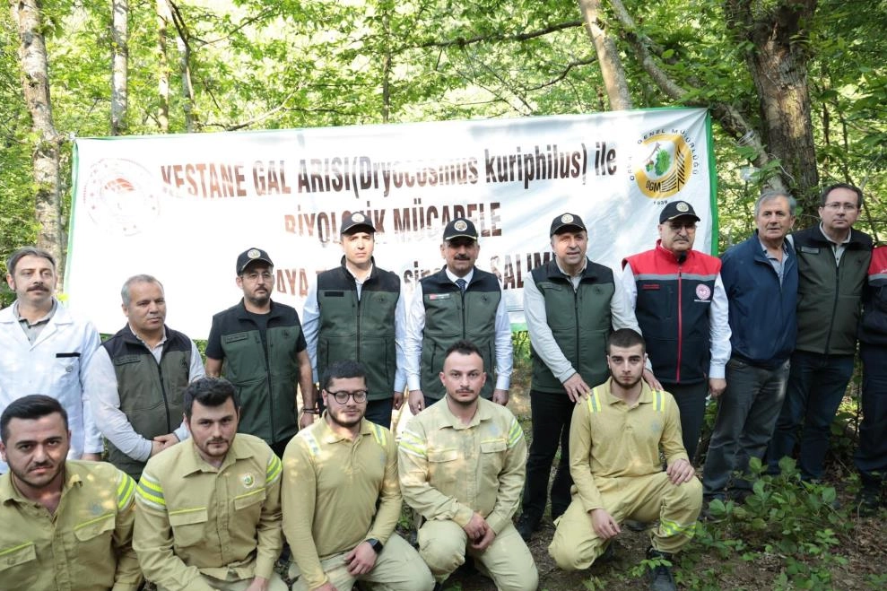 Türkiye’de 2014 yılında Yalova ve Bursa’da ortaya çıkan ve ana vatanı Çin olan gal arısına karşı mücadele sürüyor. 2020 yılından itibaren Zonguldak’ta da görülen; kestane ağaçlarının tomurcuklarına bıraktığı yumurtalarla birlikte çoğalan gal arası, ağaçların çiçek açmasını engelleyerek zamanla kurumasına sebep oluyor. Kestanedeki rekolteyi de düşüren, kestane balının üretiminin azalmasına da sebep olan gal arısına karşı mücadele programı çerçevesinde doğaya 600 yırtıcı böcek salındı. Kilimli ilçesine bağlı Göbü Şirinköy’de dğaya salınan “Torymus sinensis”ler ile birlikte kestane ağaçlarının korunması hedefleniyor. Zonguldak Valisi Osman Hacıbektaşoğlu, Orman Bölge Müdürü Faruk Bayraktaroğlu, Tarım ve Orman İl Müdürü Nihat Ağan ve görevli personellerin katılımıyla gal arısına karşı mücadelenin süreceği ifade edildi. Zonguldak Valiliği; ‘Doğada biyolojik denge için faydalı böcek popülasyonu yeterli sayıya ulaşıncaya kadar kestane gal arısının yoğun zarar yaptığı bölgelerde faydalı böcek salımına devam edilecektir” paylaşımında bulundu.