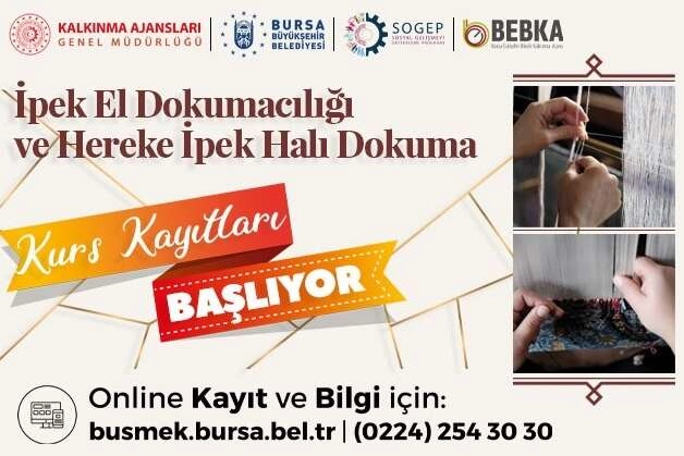 Sanayi ve Teknoloji Bakanlığı Kalkınma Ajansları Genel Müdürlüğü tarafından yürütülen 2021 yılı Sosyal Gelişmeyi Destekleme Programı (SOGEP) çerçevesinde, Bursa Eskişehir Bilecik Kalkınma Ajansı’nın (BEBKA) desteği ile hayata geçirilen "İpek Şehri Bursa: Kırsal Kalkınma Projesi" için çalışmalar devam ediyor. 2015-2016 döneminde “Bursa İpeği Yeniden Hayat Buluyor” projesi çerçevesinde, “Umurbey İpek Üretim ve Tasarım Merkezi”nin açılmasıyla başlayan süreçte Bursa İpeği’nin yurt içi ve yurt dışında çeşitli fuar ve organizasyonlarda tanıtımlarını yapıldı. BUSMEK tarafından şimdi de özellikle dağ yöresine katma değer sağlamak ve kadın istihdamına katkı sağlamak amacıyla “İpek El Dokumacılığı” ve “Hereke İpek Halı Dokuma” kursları açılıyor. Umurbey İpek Üretim ve Tasarım Merkezi, Büyükorhan ilçesi; Kınık, Sarnıç ve Karaağız Mahalleleri ile Keles ilçesi; Sorgun Mahallesi’nde, İznik Derbent Mahallesi’nde açılacak kurslar sayesinde kadınların ipek halı ve kumaş dokumayı öğrenerek, sosyal ve ekonomik açıdan yaşam kaliteleri yükselmiş olacak. Proje çerçevesinde ‘Orhaneli, Keles, Harmancık, Büyükorhan ve İznik ilçelerindeki kadınların mesleki eğitimden geçip kalifiye olarak tekrar üretim süreci içerisinde yer almalarına katkı sağlanıp, kadın kursiyerlerin aktif işgücüne katılımlarını sağlanacak ve sosyo-ekonomik gelişmişlik düzeylerinin artırılmasına katkı verilecek. “İpek El Dokumacılığı” ve “Hereke İpek Halı Dokuma” kurslarına katılmak isteyen kişiler, busmek.bursa.bel.tr internet adresindeki online başvuru kısmından ön kayıt yaptırabilecekler.