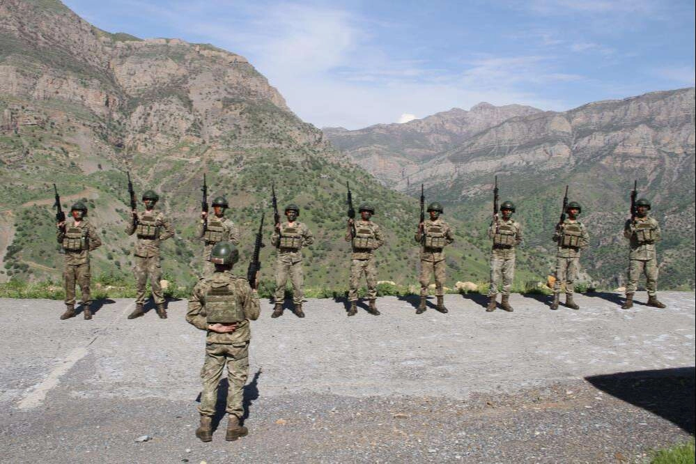 Şırnak'ta, Irak sınırında görev yapan Mehmetçik, son teknoloji silah ve cihazlarla donatılan karakollar PKK terörüne geçit vermiyor. Silopi ilçesi 72’nci Zırhlı Tugay Komutanlığına bağlı 8’inci Hudut Alay Komutanlığının Siyahkaya Hudut Karakolu’nda vatani görevini yapan Mehmetçik, bir taraftan Şırnak-Irak sınırının sıfır noktasında elleri tetikte, gözleri sınırda görevini ifa ederken, diğer taraftan da komutanlar ve askerler bayram sevincini yaşadı. Şırnak'ta sınırın sıfır noktasındaki Siyahkaya Hudut Karakolu’nda görevli askerler, namaz sonrası tören alanında bayramlaşmak için yerini aldı. “Hudut namustur” ilkesiyle sınırı koruyan Mehmetçik, ailelerinden uzakta görev yaptıkları karakolda silah arkadaşları ve komutanları ile bayramlaştı. Daha sonra karakol yemekhanesinde asker, ailelerinden gelen görüntülü bayram mesajlarını izledi. Askere kulede bayram sürprizi Siyahkaya Hudut Karakolu’nda vatani görevini yapan askere bayram sürprizi yapıldı. Mardin’de yaşayan anne Fatma ve baba Ahmet Aydoğdu, Ramazan Bayramı’nda oğullarıyla buluşturulmak üzere Şırnak’a getirildi. Oğulları Emrullah’ın askerlik yaptığı Hudut Karakolu’na götürülen anne ve baba, oğulları ile kulede buluştu. Anne Fatma Aydoğdu, oğlunu göreceği için çok heyecanlı olduğunu söyledi. Nöbet yerine giderken bölük komutanı Üsteğmen Furkan Arda Temizkan, kuleye çıkarak askerden tekmil aldı. Üsteğmen Temizkan, askere ailesini arayıp aramadığını sorması üzerine Emrullah Aydoğdu, “Nöbetten sonra arayacağım” dedi. Üsteğmen Temizkan, bunun üzerine askere 'Telefonla ailen ile görüştüreyim' diyerek, askerin Babası Ahmet Aydoğdu’yu aradı. Babasıyla bir süre görüşen Emrullah, bir anda annesini ve babasını karşısında gördü. Ailesini karşısında gören asker Emrullah Aydoğdu, bir anda donup kaldı. Daha sonra birbirlerine sarılan aile, sevinç gözyaşları döktü. Dakikalarca sarılan anne, baba ve asker oğlu hasret giderdi. Oğlunu gördüğü için çok mutlu olduğunu söyleyen Ahmet Aydoğdu, her anne ve babanın bunu yaşaması gerektiğini söylerken, duygusal anlar yaşandı. Daha sonra oğlu ve diğer askerlerle yemek yiyen Aydoğdu ailesi, buna vesile olan herkese çok teşekkür ettiklerini söyledi. Irak'ın Sinat-Haftanin bölgesinin karşısında kurulan bin 100 rakımlı Siyahkaya Hudut Karakolu’nda nöbet tutan Mehmetçik, sınırdan gelebilecek terör saldırıları olaylarına karşı vatan savunması yapıyor. Türkiye-Irak sınırını koruyan sınır hattındaki Mehmetçik, 7 gün 24 saat vatan savunması yapıyor. Mehmetçik, gece görüş, gece termal, seçe, dron, şahingözü, engerek, Sarp Silah Sistemi, gergedan, dron savar, mayın, tel engel, kamara sitemleri, tank, top ile her türlü terör unsurlarına geçit verilmeyen karakolda gece gündüz büyük bir mücadele yürütüyor.