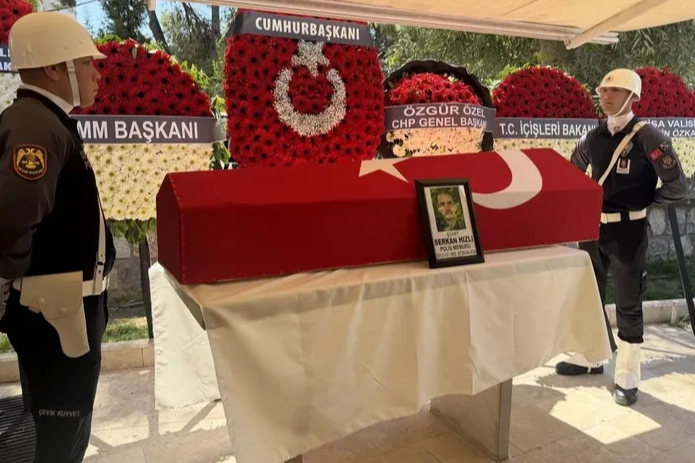 Akhisar Yeni Gülruh Camii'nde öğle namazını müteakip kılınan cenaze namazında şehidin acılı annesi Hatice Hızlı, babası Enver Hızlı ve kardeşi Gökhan Hızlı'nın ayakta durmakta zorluk çekti. Manisa İl Müftüsü Şükrü Kabukçu'nun kıldırdığı cenaze namazında şehidin polis meslektaşları da acılı aileyi bir an olsun yalnız bırakmayarak teselli etmeye çalıştı. Şehit Serkan Hızlı kılınan cenaze namazının ardından meslektaşlarının omzunda taşınarak törenle Akhisar Şehitliği'nde toprağa verildi.
