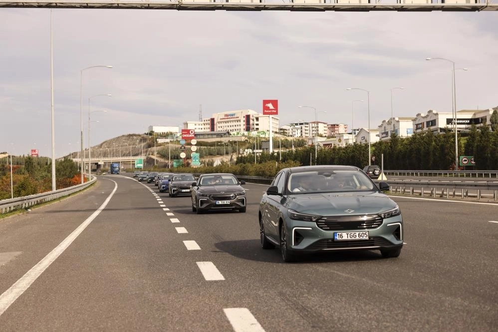 Test sürüşü, basın mensupları ve sosyal medyada otomobil influencerlarının katılımıyla gerçekleştirildi. Sabiha Gökçen Havalimanı Airport Otel'de gazetecilere teslim edilen araçlar, konvoy halinde yola çıktı. 20 adet Togg T10F, çevre yolu üzerinden Osmangazi Köprüsü'nü geçerek Bursa, Balıkesir ve Manisa güzergâhını izledi. Araçlar, ortalama 115 km hızla ilerleyerek tek şarjla İzmir Konak'taki Swiss Otel'e ulaştı. Otelde basın mensuplarını Togg yetkilileri karşıladı. Testin ardından düzenlenen toplantıda, araçları deneyimleyen gazetecilerin görüşleri alındı. Togg'un T10F modelini test eden Türkiye Gazetesi Otomobil Yazarı Ali Çelik, "Bu sürüş deneyimi bizim için çok faydalı oldu, çünkü tek şarjla İstanbul'dan İzmir'e gelebildiğimizi gördük. Bu sevindirici bir gelişme. Otomobilleri daha yakından inceleme fırsatı bulduk. Sosyal medyadaki video kanallarında yabancıların da görüşlerini biliyoruz. Onlar da çok başarılı buluyorlar. Almanya satışları başladı, talep de çok var. Özellikle Alman otomotiv basını Almanya'da Mercedes, BMW, Audi gibi premium modellerle T10F'i ve X'i karşılaştırıyor. Buradaki detayları da yakından görmek bizim için çok iyi oldu" dedi. Yolculuk sonrası gazetecilerin görüşlerinin de alındığı toplantıda Togg T10F ve Togg'un artan servis merkezi sayısı ve kısalan bakım süresi ile ilgili yapılan olumlu yorumlar dikkat çekti. Togg T10F'in öne çıkan özellikleri Menzil (WLTP) - 623 km'ye kadar, Şarj Süresi - Yüzde 20'den Yüzde 80'e yaklaşık 28 dakika (180 kW DC hızlı şarj), Motor Seçenekleri - Tek motorlu RWD: 218 hp, Çift motorlu AWD: 430 hp, 0–100 km/s Hızlanma - 4,6 – 7,5 saniye arası (versiyona göre), Maksimum Hız - 200 km/s, Dijital Kokpit - 12,3 inç gösterge, 29 inç bilgi-eğlence, 8 inç kumanda ekranı (toplam 41,3 inç uçtan uca ekran), Bağlantılı Teknolojiler - Araç içi sosyal kamera, yüksek hızlı internet, Wi-Fi hotspot, Snapdragon işlemcili kokpit, Aerodinamik - 0.24 sürtünme katsayısı