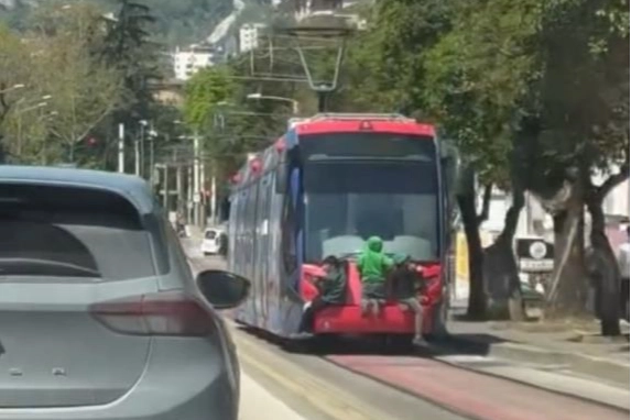 Bursa'nın Osmangazi ilçesi Çekirge Mahallesi Darmstadt Caddesi üzerinde seyreden tramvayın arkasına tutunan 3 çocuk, hem kendi canlarını hem de trafikteki diğer sürücüleri tehlikeye attı. O anlar cep telefonu kamerasına yansıdı. Hareket halindeki tramvayın arkasına tutunan çocuklar metrelerce bu şekilde ilerledi. Çocukların tehlikeli yolculuğunu gören vatandaşlar duruma tepki gösterirken, kimilerine bu görüntüler 'pes' dedirtti. Herhangi bir olumsuzluk yaşanmadan tramvaydan ayrılan çocuklar gözden kayboldu.