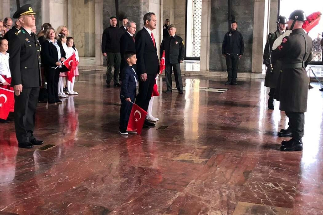 Milli Eğitim Bakanı Mahmut Özer başkanlığındaki Bakanlık bürokratları ve 81 ili temsil eden öğrencilerden oluşan heyet, Aslanlı Yol'dan yürüyerek Gazi Mustafa Kemal Atatürk'ün mozolesine geldi. Özer’in mozoleye çelenk bırakmasının ardından saygı duruşunda bulunuldu, daha sonra İstiklal Marşı okundu.