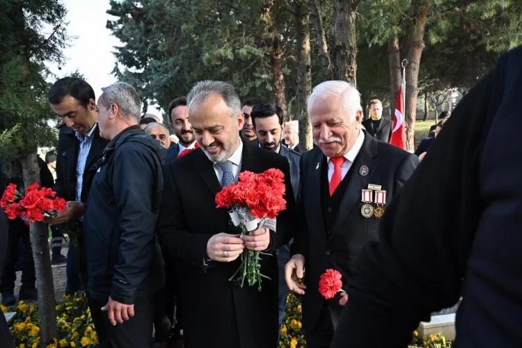Çanakkale Zaferi’nin 109’uncu yıldönümü tüm yurtta farklı etkinlikle kutlanırken, Bursa’da düzenlenen törenlerde şehit ve gaziler anıldı. Bursa Valiliği tarafından düzenlenen 18 Mart Şehitler Günü programında ilk etkinliklerin adresi Hamitler Şehitliği oldu. Bursa Valisi Mahmut Demirtaş ve Bursa Büyükşehir Belediye Başkanı Alinur Aktaş ile Bursa protokolü ve şehit ailelerinin de katıldığı etkinlikte, çelenk sunumları, saygı atışı, İstiklal Marşı’nın okunması ve Türk Bayrağı’nın göndere çekilmesinin ardından şehitler dualarla anıldı. Bursa Büyükşehir Belediye Başkanı Alinur Aktaş, Vali Mahmut Demirtaş ile birlikte şehit mezarlıklarına karanfil bırakarak, şehit ailelerine çiçek takdiminde bulundu.