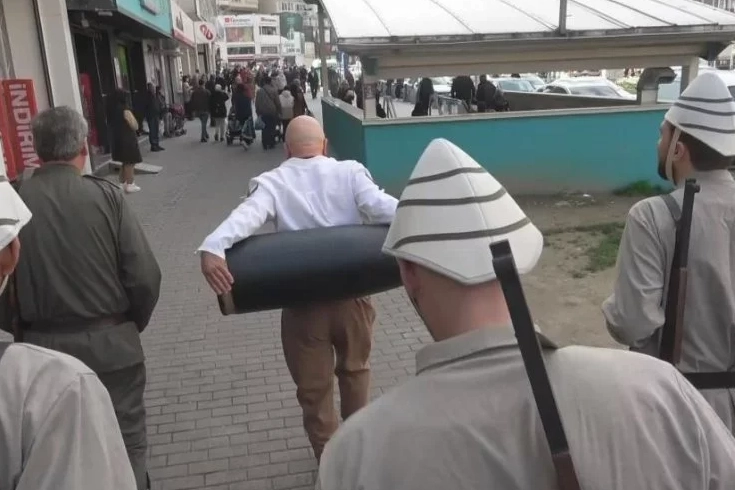 Seyit Onbaşıyı canlandıran tiyatrocu ve silah arkadaşlarının temsili 215 kilogramlık top mermisiyle metroya binmesi ve gösterisi izleyenleri gözyaşlarına boğdu. Metroda ve Bursa sokaklarında duygu dolu anlar kameraya yansıdı.