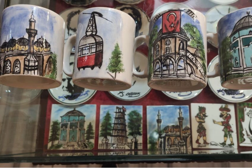 Ördekli Kültür Merkezinde açılan sergide Ulucami'den Tophane'ye, Cumalıkızık'tan Emir Sultan'a kadar Bursa ile birçok eser sergileniyor. Yeşil türbe, Uludağ, eski, yeni teleferik, ipek böceği ve Cumhuriyet Caddesinde bulunan tramvayı da çinilere işleyen Ertuğrul Çay, 39 yıl önce Kütahya'da çini fabrikasında çalışırken amatör olarak resim sanatıyla ilgilendiğini, emekli olduktan sonra kendini bu işlere verdiğini söyledi. Kütahya'da çalışma atölyesi bulunan Çay'ın sergisi, 8 Mart Cuma gününe kadar açık kalacak.