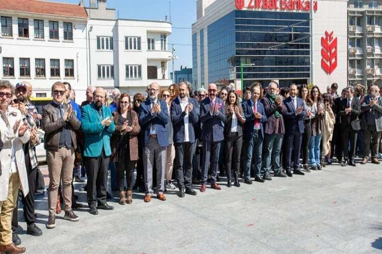 Bursa’da tiyatro sanatına emek veren sanatçılar, ‘27 Mart Dünya Tiyatro Günü’nde Atatürk heykeline çelenk koydu. Uluslararası Tiyatrolar Birliği tarafından belirlenen ve 1961’den bu yana her sene 27 Mart tarihinde kutlanan ‘Dünya Tiyatro Günü’, Bursa’da da tiyatro sanatına gönül verenlerin bir araya geldiği anlamlı bir törenle kutlandı. Tiyatro emekçileri bu yıl 62’ncisi kutlanan ‘Dünya Tiyatro Günü’ dolayısıyla Heykel’de bir araya geldi. Bursa Büyükşehir Belediyesi Başkanvekili Fethi Yıldız’ın da katıldığı törende, Büyükşehir Belediyesi Şehir Tiyatrosu, Bursa Devlet Tiyatrosu, Çek Sanat Tiyatrosu, Güney Marmara Tiyatro Kooperatifi ve Bursa Sanat Tiyatrosu oyuncuları hazır bulundu. Atatürk heykeline çelenk sunulan törende, Şehir Tiyatroları Sanatçısı Yüksel Hakverdi tarafından günün anlam ve önemini anlatan bir konuşma yapıldı. Törende, Tiyatro Sanatçısı Çağrı Zona tarafından ‘Tiyatro Günü Ulusal Bildirisi’ ile ‘Tiyatro Günü Dünya Bildirisi’ de okundu. Tiyatronun din, dil, ırk farkı gözetmeksizin toplumun ortak değeri olduğunu belirten Başkanvekili Fethi Yıldız, “Tiyatro bazen kimsesizlerin kimsesi, bazen acı çekenlerin acısı, bazen sevinçlere ortak olur. Bursa’yı bu konuda çok şanslı görüyorum. Bursa gerçekten sanatçıların ve tiyatrocuların başkenti olma yolundadır. Bu konuda emeği geçen bütün sanatçılara teşekkür ediyorum. Bursa Büyükşehir Belediyesi Şehir Tiyatroları da güzel işlere imza atıyor” dedi.