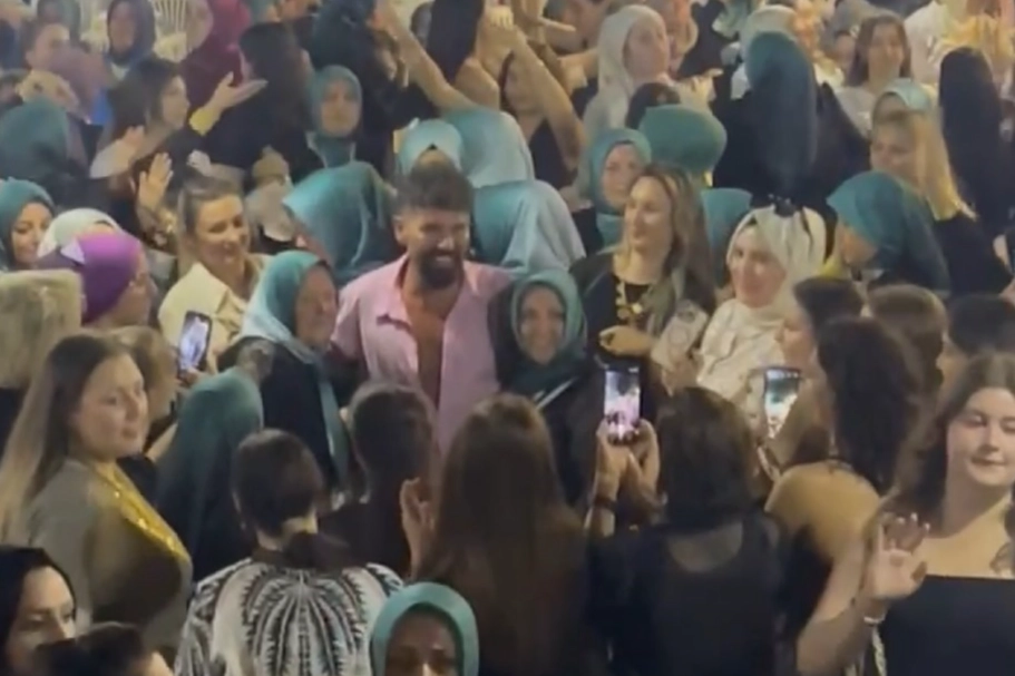 Köylü kadınların şalvar gecesine katılan ünlü şarkıcı şalvarlı kadınlarla birlikte coştu şarkı söyledi.