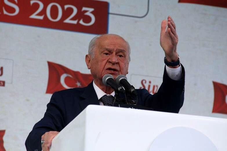 MHP Genel Başkanı Devlet Bahçeli, Sivas Halk Buluşması'nda Cumhurbaşkanı Recep Tayyip Erdoğan'dan önce kürsüye çıkarak Sivaslılara seslendi. Bahçeli konuşmasında Cumhurbaşkanlığı Hükümet Sistemi'nin devam etmesi gerektiğine değinerek, “Türkiye'de 1946'da çok partili demokrasiye geçildi. O günden bu güne geçen 70 yıllık dönem içerisinde 17 koalisyon hükümeti kurulmuş, bu hükümetlerin ömrü kısa olmuş, 5-6 siya parti iktidarı görülmüş, fakat Türkiye'nin hiçbir sosyal ve ekonomik problemi çözülmediği gibi Türkiye'nin başına musallat olan iç ve dış güçlere karşıda milletçe durulamamıştır. Yani, parlamenter sisteme tekrar dönelim diye mevcut sistemi eleştirenlere sesleniyorum. Bu kadar ağır bir felaketin yaşandığı dönemde şuan için kalkıp, 17 defa koalisyon hükümeti kurulmuş hepsinin ömrü 1-2 yıl olmuş, böyle bir yapıyla mı bu problemlerin altından kalkılabilecek. Şimdi bunun bir örneğini hep beraber görüyoruz. Cumhurbaşkanlığı Hükümet Sistemi seçimlerinin 2. turunu yaşarken bazı siyasi partiler bir araya geldiler, kimisi ittifak kurdu, kimisi başka yollara tevessül etti. Netice itibariyle 6'lı bir masa oluşturdular. Bu 6'lı masa 1.5 yıl toplandı bir tane Cumhurbaşkanı adayı belirlemekte başarılı olamadı. Sonunda bir isim üzerinde mutabakata vardıklarını söylediler ama masa alttan üstten çatladı, bir takım PKK terör örgütünün uzantılarıyla da bir arada yeni yeni suni masalar oluşturmaya çalıştılar. Şimdi Sivaslılara soruyorum. 1.5 yıl bir araya geldiniz. Her akşam bir yemek yediniz. Yediğiniz yemeklerde ne yediğinizi millete söylemediniz ama milletin karşısına geçip yalanla dolanla ortalığı karıştırıp, patatesten, soğandan, domatesten bahsedip pahalılıkları istismar ettiniz. Netice itibariyle bir tane adayı bulamadınız. En sonunda bir karara vardınız. Bugün bu adayla yarışa giriyorsunuz. Bu yedi partiden oluşan, yarın Meclis'te nasıl temsil edileceği belli olmayan, yönetimde istikrar yerine paydaşlar üreten, makamlar dağıtanlarla Türkiye'nin bugün ki ekonomik sıkıntılarını aşmak mümkün gözükmüyor” diye konuştu.