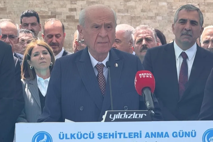 Konuşmasında halk ozanı Yunus Emre’nin "Olsun be aldırma/Yaradan yardır/Sanma ki zalimin ettiği kardır/Mazlumun ahı indirir şahı/Her şeyin bir vakti vardır" dizelerini hatırlatan Bahçeli, "Toprağımızda izi olmayanların, tohum tohum saçılan emekleri inkar edenlerin, tarlası omuzunda oradan buraya gezenlerin bugünlerde maske takıp Milliyetçi-Ülkücü Hareket’i haksız ve hayasız şekilde suçlaması, bilinmelidir ki evvelemirde şehitlerimizin aziz hatıralarına saygısızlıktır. Gerçekten her şeyin bir vakti vardır, o vakit hızla yaklaşmaktadır. O vakit Türkiye Yüzyılı'yla simgelenmekte, yeni bir milli birlik ve kardeşlik asrıyla tebarüz etmektedir. Şehitlerimizin kutlu emanetleri başımızın üstünde, kalbimizin derinliklerinde, ömrümüzün ve önümüzün tam merkezindedir. Vefa bilmeyenlerin vakardan haberi olmaz. Sadakati devre mülk gibi gören sahte ve simsar zihniyetlerin Türk milliyetçiliğiyle ilgili fitne ve dedikodu yaymaları ademe de mahkumdur. Çıkarlarının sevdalısı olan siyasi devşirmeler, davasının sevdasıyla çelikleşmiş ve bayraklaşmış ülkücü şuura elbette nüfuz edemez, hiçbir süratte de yalan ve iftiraya dayanan çirkin sözlerinin değerinden ve ederinden bahsedilemez. Şehitlerimizin yeri gönüllerde, mükâfatı ise Yüce Allah’ın rahmetindedir" dedi.