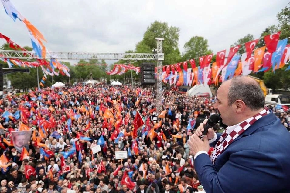 İnegöl'deki miting alanına yerli ve milli Togg ile gelen Sanayi ve Teknoloji Bakanı Mustafa Varank, coşkuyla karşılandı. Vatandaşların açtığı, "İtalyanlar ne diyor biz yapmadık. Türkler yaptı, diyor" pankartı dikkat çekti. İnegöllü vatandaşlara seslenen Bakan Varank, muhalefetin terör örgütleriyle ortak hareket ettiğine dikkat çekti. Varank’ın “Bizi engellemeye çalışanlara aldırış etmedik. Onlara kulak verseydik icraat yapamazdık. Türkiye’nin otomobili burada yapamazsınız dediler 177 bin araç sipariş verildi. Bu araç İtalya’da üretiliyor, diyorlar. İtalyanlar ne diyor; 'Biz yapmadık Türkler yaptı' diyor. Karşımızda çok cahil muhalefet var. Gemlik’i İtalya’da zannediyorlar. 14 Mayıs akşamı hepsini öğrenecekler. İş bilenin kılıç kuşanın." diye konuştu. Bakan Varank, "Bunların aklına uysaydık Bursa’da şehir hastanesi olmazdı, otobanlar olmazdı, İnegöl’deki fabrikalar olmazdı. Bize alternatif olduklarını iddia edenler var. Cumhurbaşkanımızın alternatifi olduklarını söylüyorlar. Cumhurbaşkanımızın alternatifi olmaz. Eskiden koalisyonlar vardı, gençler hatırlamaz ama o dönem kirli pazarlıklar vardı. Biz o dönem çok çektik, bu ülkede her gün krizlerle boğuştu. Bu koalisyon masasının ortağı Meral Akşener ülkenin en mutlu dönemi koalisyon zamanında olduğunu söylüyorlar. Biz Kılıçdaroğlu’nun SGK başkanı olduğu döneminde biliyorduk. O dönemlerde terör vardı sen o zaman içişleri bakanlığı yapıyordun sırça köşklerde yaşıyordun. Şuanda terör örgütleriyle pazarlıklar yapıyorlar. Teröristleri dışarı çıkaracaklarını söylüyorlar, Apo'nun tecridini bitireceğiz, diyorlar. Siz teröristlerle kucak kucağısınız pazarlık yapıyorsunuz. Teröristler 14 Mayıs’tan sonra hapishanelerden çıkacağız, diyor. Bizim aziz milletimiz kirli pazarlıklara izin vermez. 14 Mayıs’ta bu terör örgütleri kimi destekliyorsa onların karşısında durmamız lazım. 14 Mayıs'tan sonra FETÖ’cüler Türkiye’ye döneceğim, diyor. FETÖ'cülerin yeşermesine müsaade etmezsiniz dimi. Ülkemizin bu önemli seçiminde çok dikkatli olmamız lazım. Çok çalışmamız lazım, hepimizin telefonları var dimi o rehberimizdeki her bir arkadaşımızı arayacağız bu seçimde, lakin deme, terör örgütlerini çöpe göndereceğiz.” şeklinde konuştu. Mikrofon bozuldu Konuşma sırasında Bakan Varank’ın mikrofonu bozulunca Bakan Varank “Sanayi ve Teknoloji Bakanı teknolojik kaza yaşadı. Mikrofon bozuldu.” dedi. "Stadı Spor Bakanı ile görüşeceğim" İnegöl’ün sorunlarını bildiğini belirten Varank, İnegöl’e yeni bir stat kazandırmak için girişimleri başlatacaklarını belirterek “Ben buraya çok defalar buraya geldim. Bu ilçeye neler kazandıracağız onları konuştuk, onları hayata geçireceğiz. Bu ilçedeki gençlerimiz çok başarılılar, belediyemiz ile birlikte bilim İnegöl sözü gerçekleştiriyoruz. Şehrin büyük stadyum beklentisi var. İnşallah stadyum ile ilgili olarak Gençlik Spor Bakanımız ile konuşacağız, sosyal konut ihtiyacı var onu da konuşacağız bu ilçeye hizmet edeceğiz” dedi.