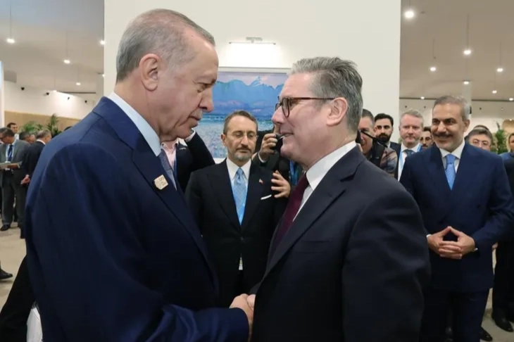 Cumhurbaşkanı Recep Tayyip Erdoğan, Birleşmiş Milletler (BM) İklim Değişikliği Çerçeve Sözleşmesi 29. Taraflar Konferansı (COP29) Dünya Liderleri İklim Eylemi Zirvesi'ne (WLCAS) katılmak üzere geldiği Bakü'de ikili görüşmelerine başladı. Cumhurbaşkanı Erdoğan, temasları kapsamında İngiltere Başbakanı Keir Starmer, ile bir araya geldi. Görüşmede Türkiye ve İngiltere ikili ilişkileri, bölgesel ve küresel meseleler ele alındı. Cumhurbaşkanı Erdoğan görüşmede, Türkiye ve İngiltere arasındaki ilişkileri geliştirmek, ticaret hacmini artırmak için gayretlerin süreceğini ifade etti. Cumhurbaşkanı Erdoğan, Ukrayna, Filistin ve Lübnan başta olmak üzere bölgedeki çatışmaları sona erdirmek için Türkiye’nin ortaya koyduğu çabaların devam ettiğini belirtti. Erdoğan, COP29 Dünya Liderleri İklim Eylemi Zirvesi'nde hitap edecek.