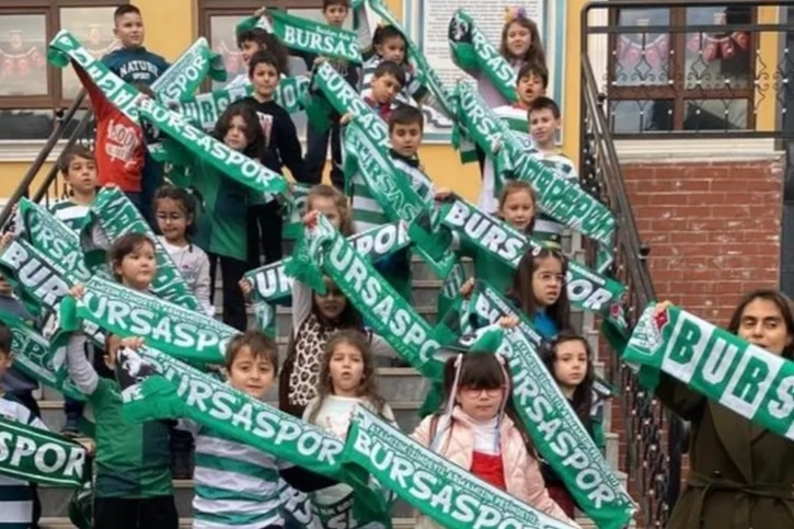 Bursa'nın en köklü eğitim kurumlarından Tophane İlkokulu'nda 2-B sınıfı öğrencileri karnelerini alıp Hoba projesi kapsamında atkılarıyla dans etti. Öğretmenleri Arzu Bilgen Kösen de bu coşkuya ortak oldu. Bursaspor atkılarıyla poz veren öğrenciler, takımlarının bu sezonu da zirvede tamamlayıp Süper Lig yolunda emin adımlarla yürüyeceğine inanıyor.