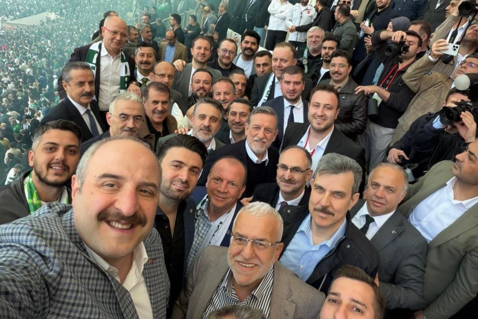 Bursa futbolunda tarihi bir gün daha yaşandı. Bursaspor, Nesine 2. Lig Kırmızı Grup’ta şampiyonluğunu ilan ederek yeniden 1. Lig’e yükselmeyi başardı. Karşılaşmayı protokol tribününden izleyen isimler arasında Mustafa Varank da yer aldı. TBMM Sanayi, Ticaret, Enerji, Tabii Kaynaklar, Bilgi ve Teknoloji Komisyonu Başkanı ve AK Parti Bursa Milletvekili Varank, maçın bitiş düdüğüyle birlikte büyük coşkuya ortak oldu. Varank, protokolde bulunan diğer katılımcılarla birlikte hatıra özçekimi yaparak bu önemli başarıyı kutladı. Öte yandan Varank’ın, Bursaspor’un geçtiğimiz sezon 2. Lig’e yükseldiği karşılaşma sonrasında da benzer bir şekilde özçekim yaparak kutlama yaptığı hatırlatıldı. Bu kareler, kulübün yükseliş yolculuğuna eşlik eden sembolik anlar arasında yerini aldı.