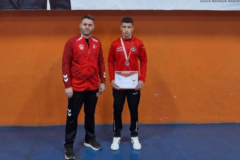 Kocaeli’nde düzenlenen Okul Sporları Güreş Gençler A Türkiye Birinciliği müsabakalarına katılan Düzce Spor Akademisi sporcusu Ensar Demirbayraklı kendi sıkletinde ikinci olarak gümüş madalya kazandı.