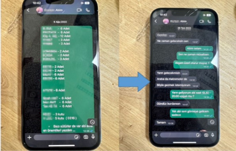 Devletin milyonlarca lira zarara uğratıldığı tıbbi malzeme yolsuzluğu iddianamesinde C.I.'nın D.B. isimli şüpheli ile yapmış olduğu Whatsapp görüşmelerinde; tıbbi malzeme talep ettiği ve bu taleplerin sürekliliğinin olduğu, D.B. isimli şüphelinin kendi gözetiminde ve sorumluluğunda olan malzemeleri hastaneden çıkararak aracının bagajında sakladığı ve bu durumun kendisinde korkuya sebep olduğu şüpheliden hemen almasını istediği, C.I.'nın D.B.'den tıbbı ürün talep ettiği, D.B.'nin de talep edilen bu tıbbi ürünler karşılığı annesinin de aralarında bulunduğu farklı kişilerin açık kimlik ve IBAN bilgilerini attığı ve bu şahısların hesaplarına para gönderttiği, D.B. ve C.I.' tıbbi ürünlerin satışından elde ettikleri geliri ortak olarak kullandıkları, D.B.'nin elde edilen gelirden tekne tatili için C.I.'dan para talep ettiği ve onay aldığına dair yazışmalara ve havale bilgilerine yer verildi.