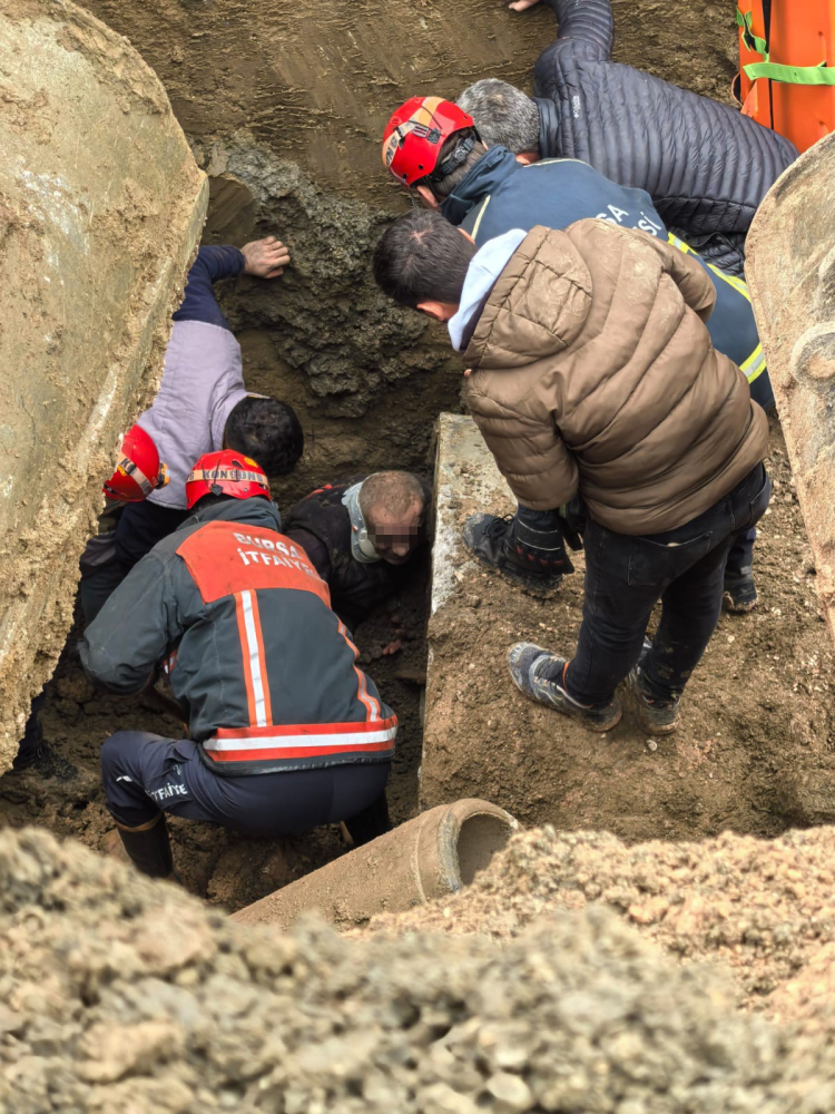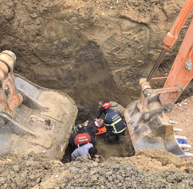 Olay yerine 112 ve itfaiye arama kurtarma ekipleri sevk edildi. Toprak altında kalan işçiyi kurtarmak için zamanla yarışan ekipler, yarım saat süren çalışma sonucu kurtardı. Ağır yaralanan Kerem G. ambulansla İnegöl Devlet Hastanesine kaldırıldı. Yaralının sağlık durumunun ciddiyetini koruduğu öğrenilirken, kurtarma anı kameraya saniye saniye yansıdı.