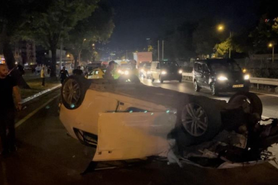 Bursa'da anayolda makas atan otomobil, aynı istikamette ilerleyen ticari taksiye çarpıp takla attı. Kazada 1'i ağır 3 kişi yaralandı.
