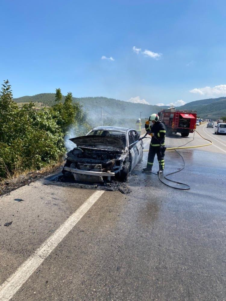 Olay, İznik ilçesi İznik-Adapazarı Yolu üzerinde meydana geldi. Sürücüsü henüz öğrenilemeyen bir otomobilden, seyir halindeyken dumanlar çıkmaya başladı. Dumanları gören sürücü, otomobili emniyet şeridine çekti. Dumanlar kısa sürede yerini alevlere bıraktı. Çevredeki vatandaşların ihbarı üzerine olay yerine itfaiye ve jandarma ekibi sevk edildi. Jandarma ekipleri çevrede güvenlik önlemi alırken, itfaiye ekipleri yangına müdahale etmeye başladı. Yangın, yol kenarındaki zeytin ağaçlarına sıçramadan itfaiye ekiplerince söndürüldü.