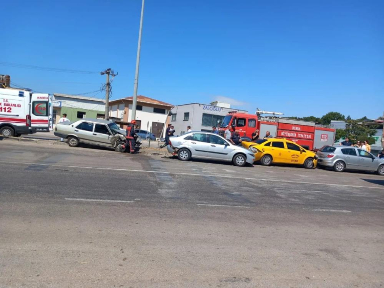 Bursa'nın Karacabey ilçesinde 5 otomobilin karıştığı zincirleme kazada 3 kişi yaralandı.