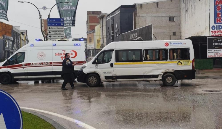 Kamyon ile servis minibüsü çarpıştı 4 kişi yaralandı