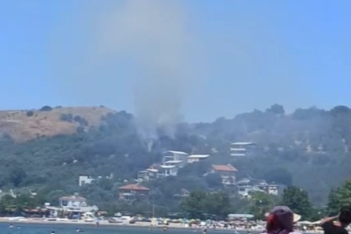 Bursa'nın Mudanya ilçesinde ağaçlık alandan yükselen alevler, sahilde denize girenlerin yüreğini ağzına getirdi. Yangına müdahale ediliyor.
