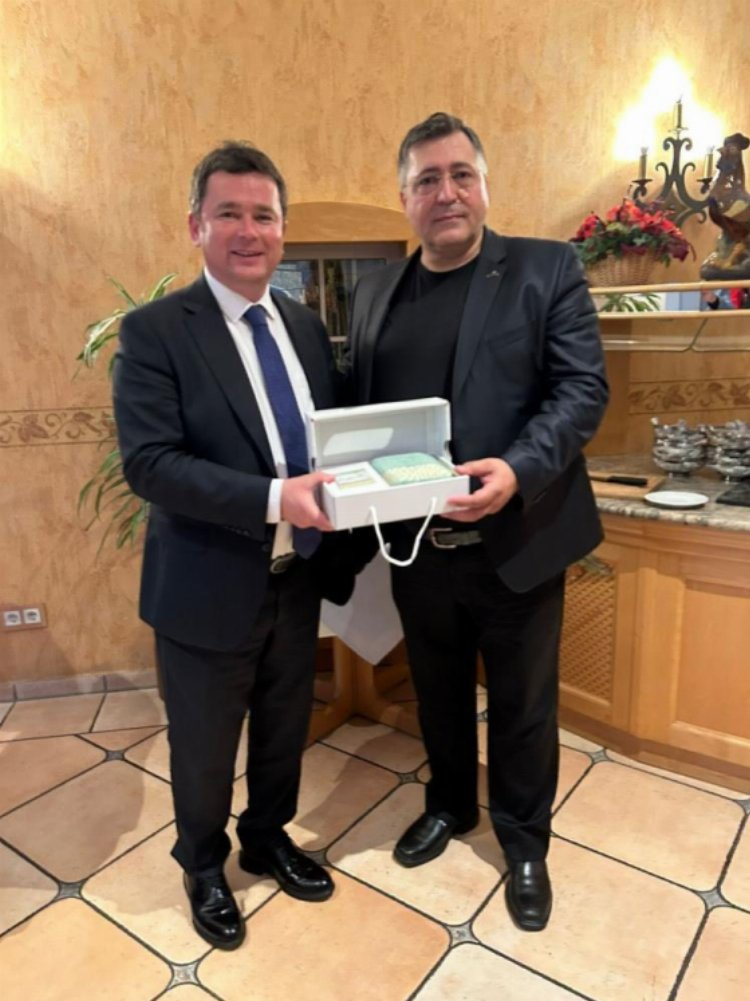Bursa’nın kardeş şehri olan Hessen eyaletinde düzenlenen ‘Hessentag 2024 Festivali’ne katılmak için Almanya’da bulunan Osmangazi Belediye Başkanı Erkan Aydın, 2012 yılından bu yana Osmangazi Belediyesi’nin kardeş şehri olan Almanya’nın Hessen eyaletine bağlı Lahn-Dill-Kreis Bölge Başkanı Stephan Aurand’u ziyaret etti. Lahn-Dill-Kreis Meclis Komisyon Başkanı Murat Polat’ın da yer aldığı ziyarette Başkan Aydın, resmi karşılama töreni ile ağırlandı. Oldukça sıcak ve samimi bir ortamda gerçekleşen ziyarette, iki başkan, mevcut projeleri ve planları hakkında bilgilendirme yaptı. Stephan Aurand, bölgenin ekonomik, sosyal ve kültürel durumu hakkında kapsamlı bir sunum gerçekleştirdi.