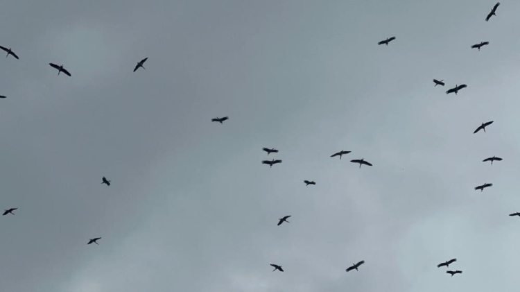 "Bolluk" müjdecisi leylek sürüsü Bursa semalarında görüldü